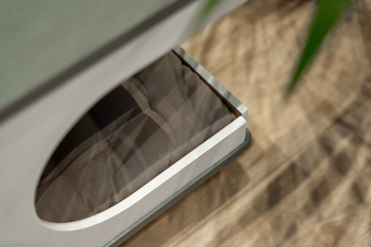 Minkšta ir Patogi Pagalvėlė: Viduje rasite patogią 5 cm. storio pagalvėlę, užtikrinančią jūsų katinui komfortą ir malonų poilsį.